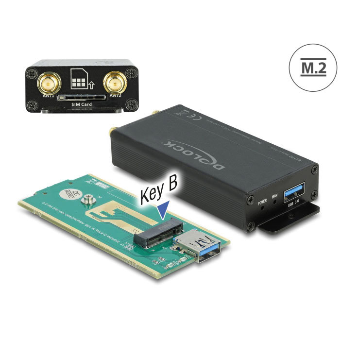 DELOCK-M.2 keyB/B+M 2242/3042 LTE/WiFi Delock Convertitore USB 3.0 per modulo M.2 Key B con slot SIM e custodia