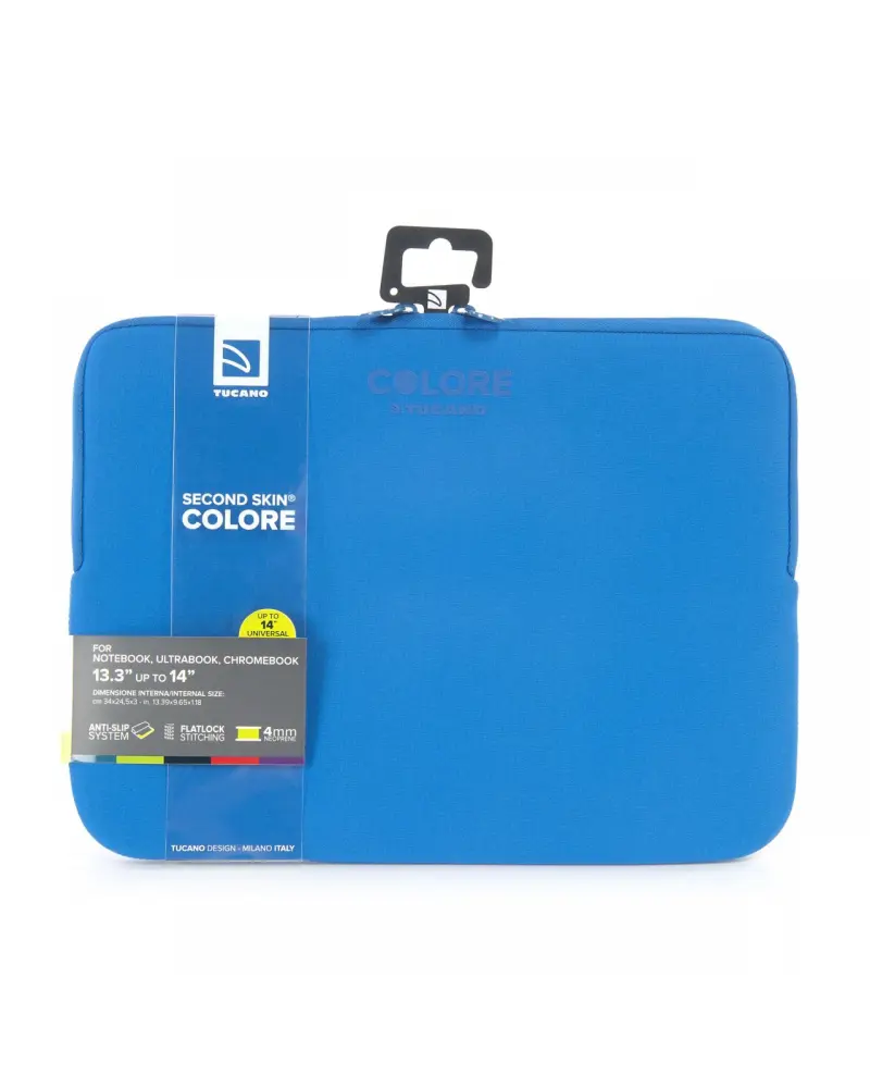 Custodia in neoprene per laptop 13"e 14" e MacBook 15" Custodia in neoprene per laptop 13" e 14" e MacBook 15". Dotata di Anti-Slip System®, due orecchie angolari ideate per fissare il device, la Second Skin® Colore è anche molto aderente grazie alla cucitura Flat-lock che garantisce uno spessore minimo e una protezione eccellente. L'interno è in morbido materiale antigraffio.
