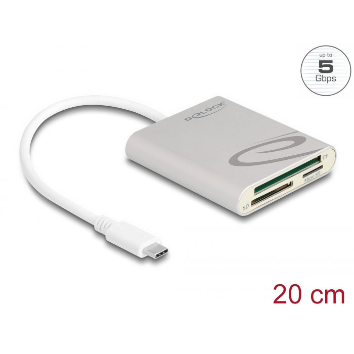 Delock Lettore di schede USB Type-C™ per schede di memoria Compact Flash, SD o Micro SD