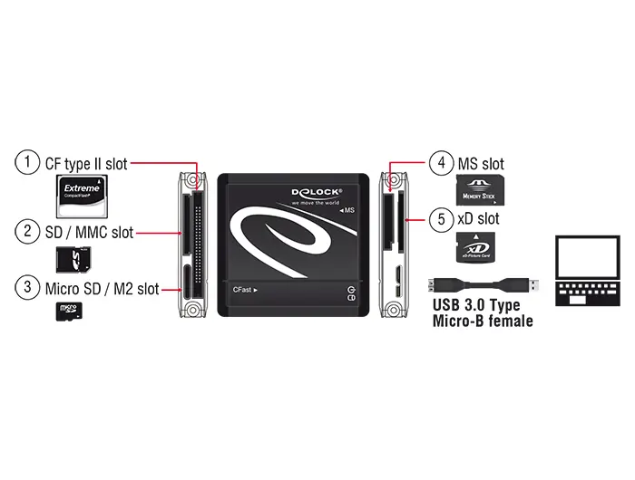 Delock Lettore di schede SuperSpeed USB 5 Gbps all-in-one