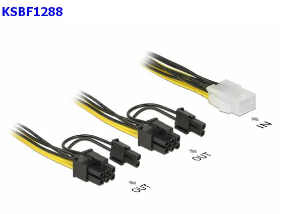 DELOCK - 15cm x PCIexpress GRAPHIC CARD This power cable by Delock can be used for power supply of PCI Express cards, which have a high power consumption and have two 8 pin respectively 6 pin power connector e.g. graphic cards. By removing two pins, both 8 pin connectors can be changed into 6 pin PCIe connectors. Specification • Connectors: 1 x PCI Express female power supply 6 pin female > 2 x PCI Express female power supply 8 pin (6+2) male • Voltage: 12 V • Cable gauge: 20 AWG • Length incl. connectors: ca. 15 cm