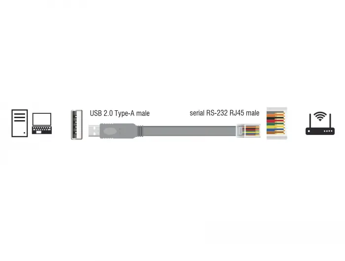 Questo cavo USB 2.0 per adattatore RS-232 Delock è adatto per la console dei router, switch, punti di accesso, ecc. CISCO tramite PC o computer portatile.