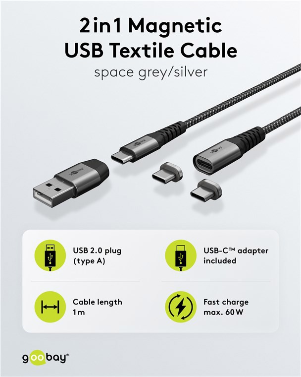 2in1 cavo tessile USB magnetico (grigio siderale/argento), 1 m
