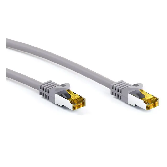 CON CAVO CAT7 - 100% RAME - 10Gb - LSZH conforme a LSZH, CU, 2 connettori RJ45 (CAT 6A) 10 Gigabit (10/100/1000/10000 Mbit) velocità della rete cavo grezzo Cat 7 fino a 600 MHz AWG 26/7 (stranded) con superfici di contatti placcate in oro da 50 µ (PIN) doppia schermatura: PiMF (coppie in lamina di metallo) + schermo esterno: treccia indicazione della lunghezza su cappuccio antipiegamento con protezione fermo adatto per Power over Ethernet (PoE/PoE+)