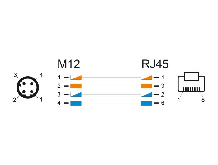• Connettori: 1 x M12 maschio a 4 pin con codice D > 1 x RJ45 maschio • Assegnazione dei pin secondo lo standard PROFINET • S/FTP - Specifica Cat.5e Schermatura: foglio di alluminio, treccia di rame stagnato Conduttore in rame Sezione dei cavi: 26 AWG (0,129 mm²) Diametro cavo: ca. 5 mm Materiale del rivestimento del cavo: PVC Corrente nominale: 4 A / 60 V Temperatura di esercizio: -25 °C ~ 60 °C Grado di protezione: IP67 (M12) / IP20 (RJ45) Colore: nero Lunghezza con connettori: ca. 5 m
