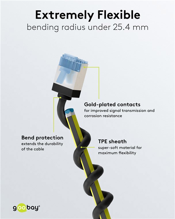 Grazie all'AWG 32 e al diametro esterno di 3,8 mm, il cavo è ultra-sottile ma potente come un cavo CAT standard