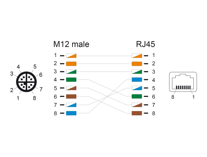 1 x M12 maschio con codice X a 8 pin