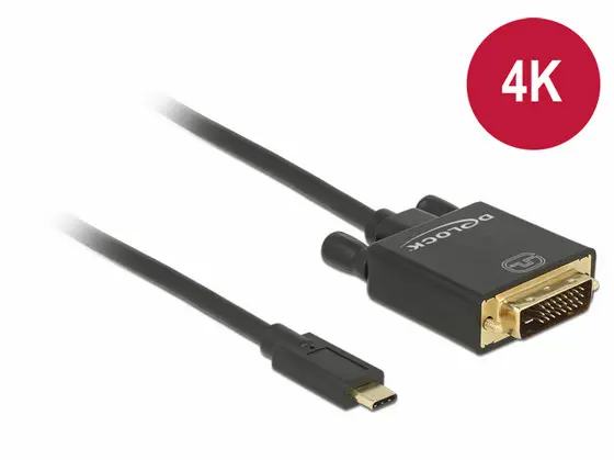 This cable by Delock enables the connection of a DVI monitor to a PC or laptop with USB-C™ or Thunderbolt™ 3 port, such as a MacBook or a Chromebook. The interface has to support the Displayport Alternate Mode.