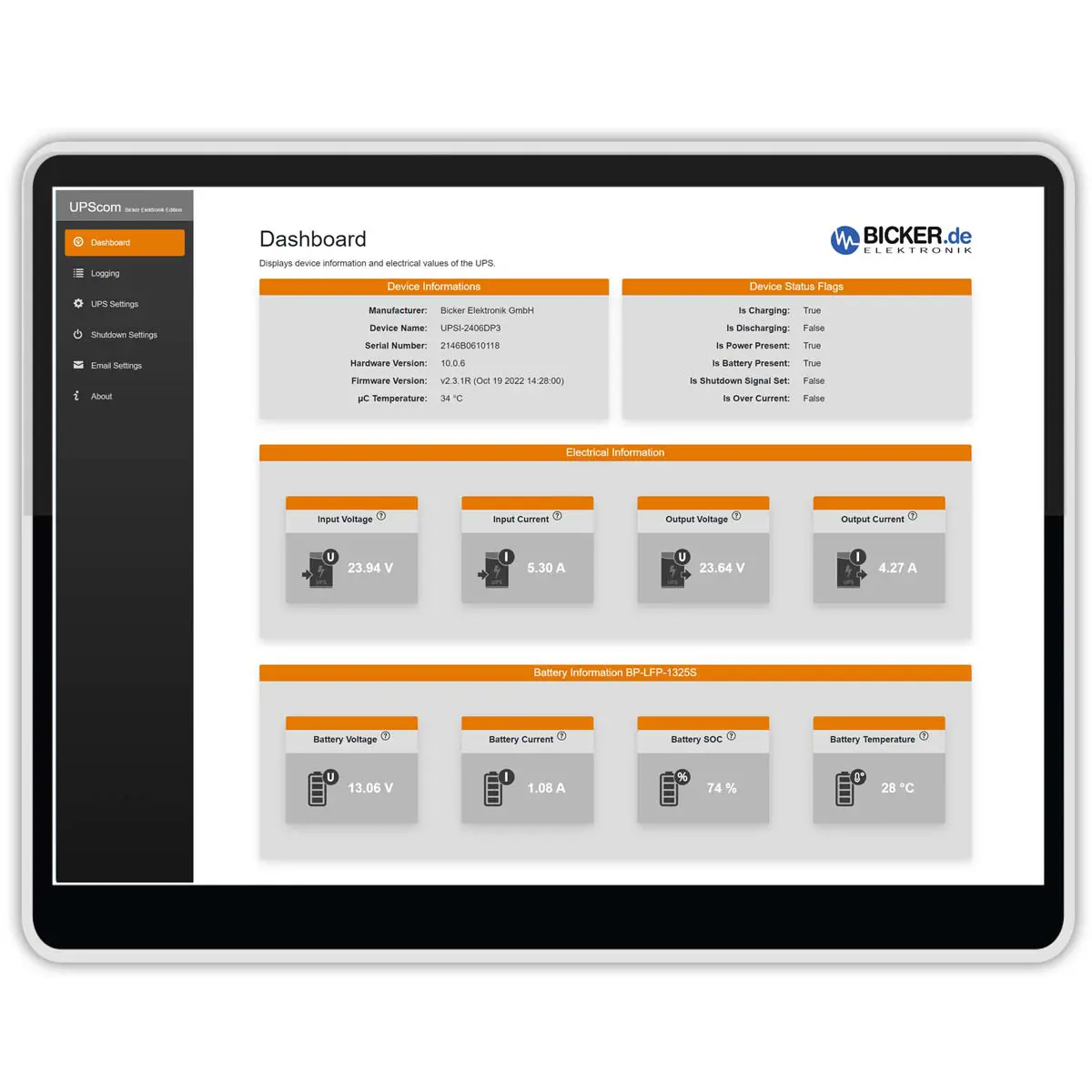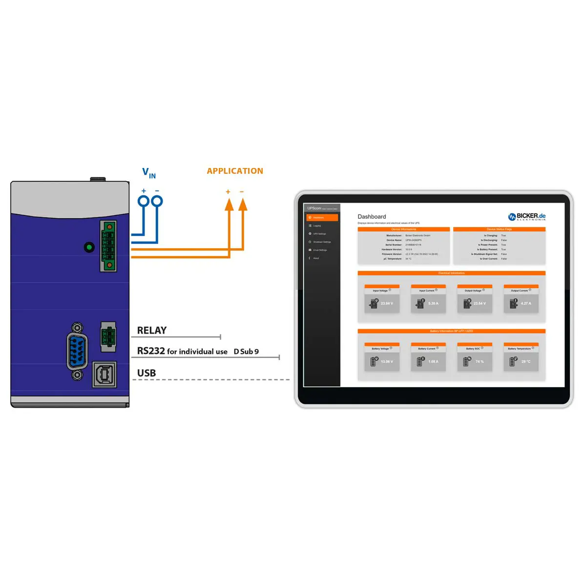 Uninterruptible power supply with Supercap Operating temperature range -20...+65°C Maintenance free thanks to Supercaps Cycle life =500.000 charge- and discharge cycles Intelligent power sharing Regulated output voltage in backup mode Minimum load detection Power fail Timer-Function Relay dry contact on power fail USB & RS232 Interface Plug&Play - recognized as UPS by operating system Extended functionality by UPScommanagement software Shutdown & Reboot function Approved to IEC/EN/UL 61010-1 / -2-201