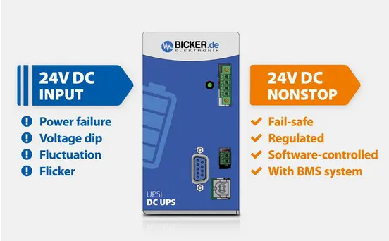 Power failures, voltage drops, fluctuations and flicker in the 24 VDC supply network can quickly become a problem in production systems, safety technology and embedded industrial PCs and cause costly failures or even data loss. The intelligent emergency power supply UPSI-2406DP2 with integrated Supercaps ensures the fail-safe supply of the connected DC load. Equipped with numerous additional functions, our DC UPS solutions convince in a wide variety of applications worldwide!