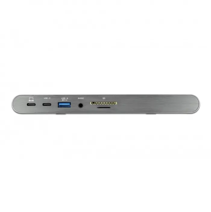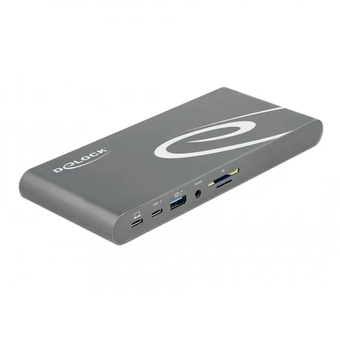 Questa docking station Delock può essere collegata ad un computer con una porta USB-C™ DP Alt Mode o Thunderbolt™ 3 e fornisce varie interfacce. Possono essere utilizzati contemporaneamente fino a tre monitor con le uscite DisplayPort, HDMI. Quattro porte USB integrate consentono l'uso di periferiche, connessioni per cuffie e rete Gigabit, così come slot SD e Micro SD ne completano le caratteristiche.
