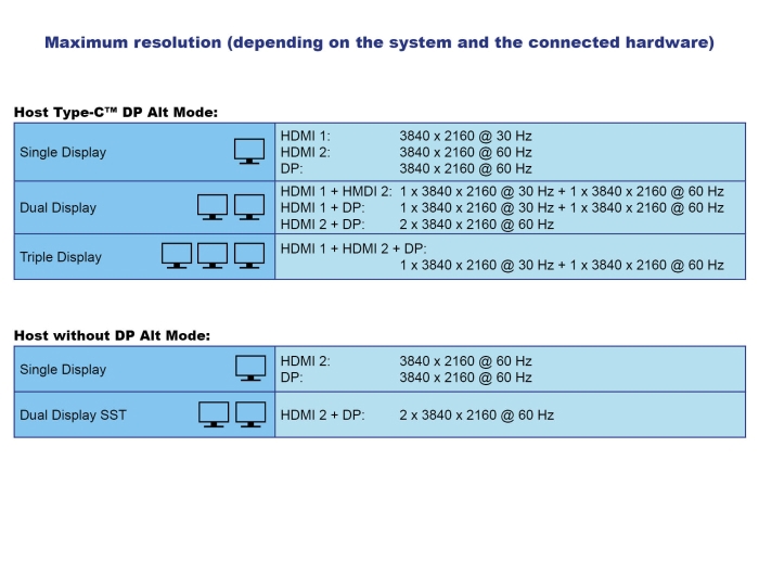 Si può garantire una risoluzione massima di 4K su tutte le porte, indipendentemente dal sistema operativo. Grazie al chipset grafico DisplayLink® si possono utilizzare le funzioni di mirroring e schermo esteso sui sistemi operativi Windows e Mac OS.