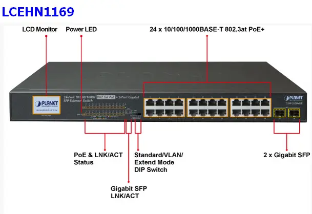 PLANET GSW-2620VHP è una soluzione Plug and Watch Power over Ethernet ideale a fornire installazione rapida, monitoraggio dello stato di lavoro PoE in tempo reale e risoluzione dei problemi immediata attraverso il suo esclusivo display LCD per migliorare l'efficienza e la qualità del lavoro senza bisogno di PC o software.