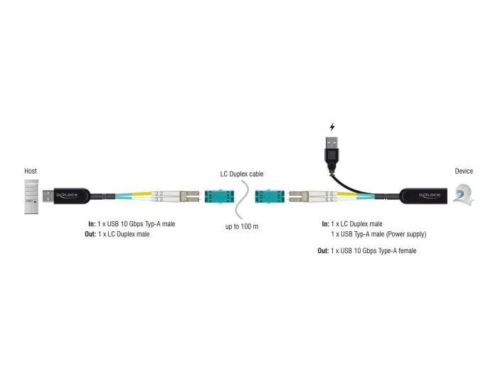 Delock Set di estensione USB 10 Gbps di Tipo-A su cavo LC Duplex