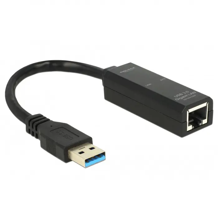 DELOCK USB2/USB3 GIBABIT 10/100/1000Mb Expand your PC or notebook by one network interface via USB 3.0. The Plug & Play function allows an easy driver installation, since it will be automatically performed, as soon as the adapter is connected to the computer.