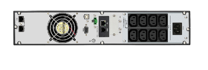 Dimensioni del prodotto: 410 x 438 x 88 mm Peso Del Prodotto: 15.5kg COMPRENDE: guide di montaggio e scheda SNMP RJ45 e 2 cavi alimentazione ingresso