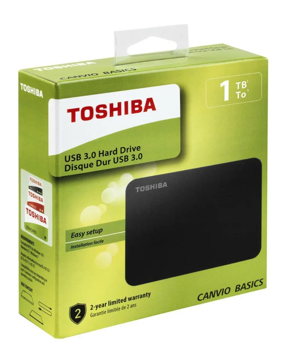 TOSHIBA HDTB510EK3AA Le unità esterne Canvio Basics consentono di archiviare una grande quantità di dati e di trasferire file ad alta velocità grazie alla tecnologia SuperSpeed USB 3.0. Con questi dispositivi, che non richiedono l'installazione di software aggiuntivi e vengono forniti pronti per l'uso con Microsoft Windows, è possibile iniziare subito ad archiviare tutti i file preferiti. Sulla scrivania o in viaggio, presentano un design senza tempo adatto a tutte le situazioni.