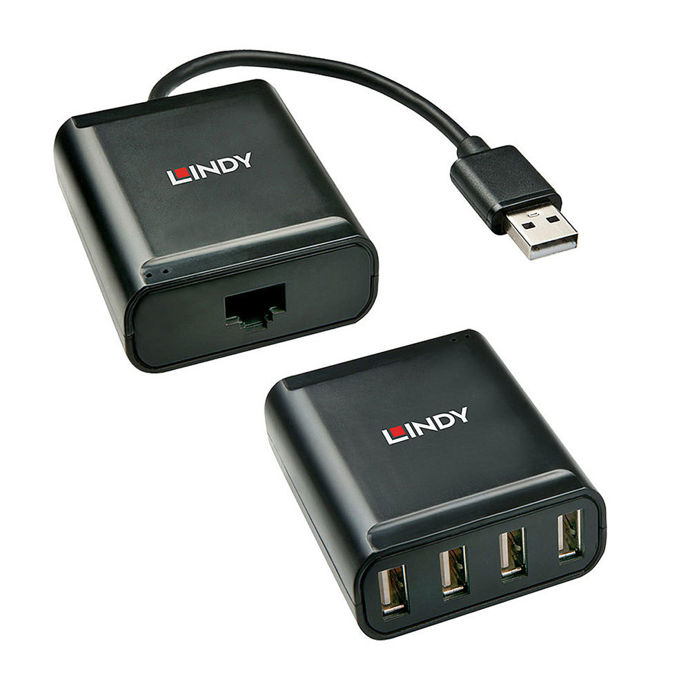 LINDY-Estende la connessione USB2 4porte Extender USB 2.0 Cat.6 4 Porte, 60m Estende 4 periferiche USB 2.0 fino a 60m