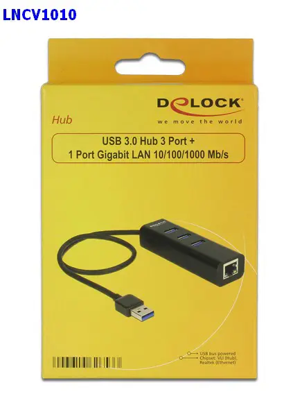 DELOCK USB 3.0 Hub 3 Port+1 Port Gigabit