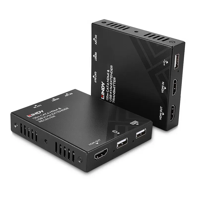 L'extender KVM Cat.6 HDMI e USB 120m di Lindy è una soluzione end-to-end completa e affidabile per controllare un dispositivo sorgente come un PC da una singola tastiera, un mouse e uno schermo su lunghe distanze tramite cavo di rete Cat.6.