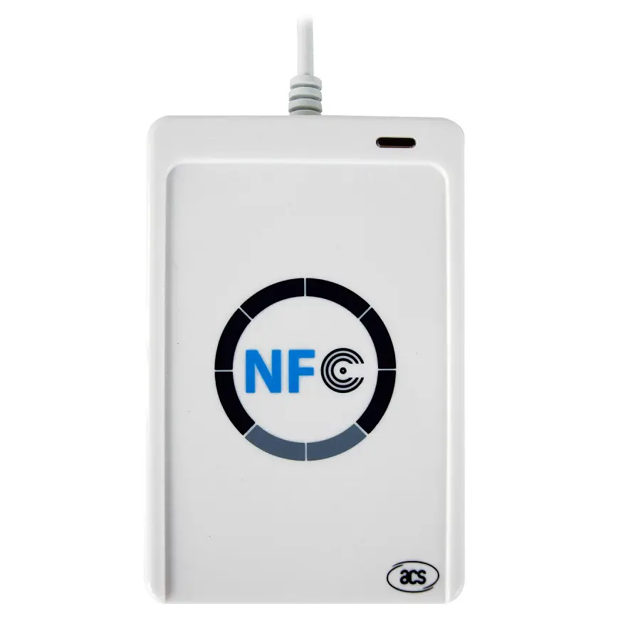 Il lettore NFC ACR122U è un lettore/scrittore di smart card contactless collegato al PC sviluppato sulla base della tecnologia RFID (Contactless) a 13,56 MHz.