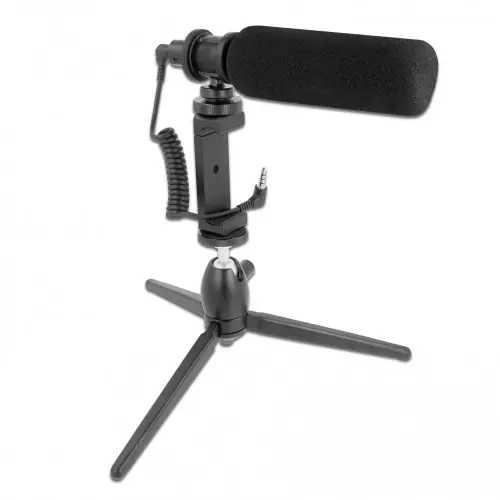 SHOTGUN SMARTPHONE DSLR CAMERA TRRS/TRS Delock Set di microfoni Vlog Shotgun per Smartphone e fotocamere DSLR Questo microfono direzionale a condensatore USB Delock può essere utilizzato per registrazioni vocali di alta qualità.