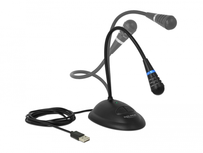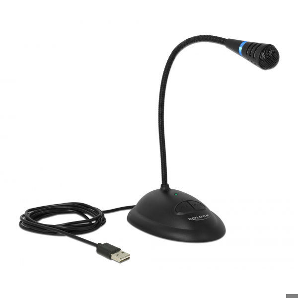 Delock Microfono USB a collo di cigno con supporto e pulsante mute + on / off