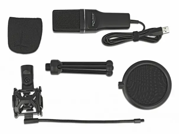 DELOCK UNIDIREZIONALE xPODCASTING Delock Set di microfoni a condensatore USB professionale per podcasting, giochi e voci Questo microfono a condensatore USB Delock può essere utilizzato per registrazioni vocali di alta qualità.
