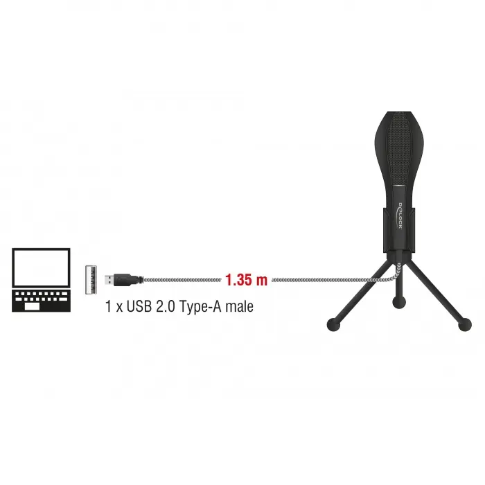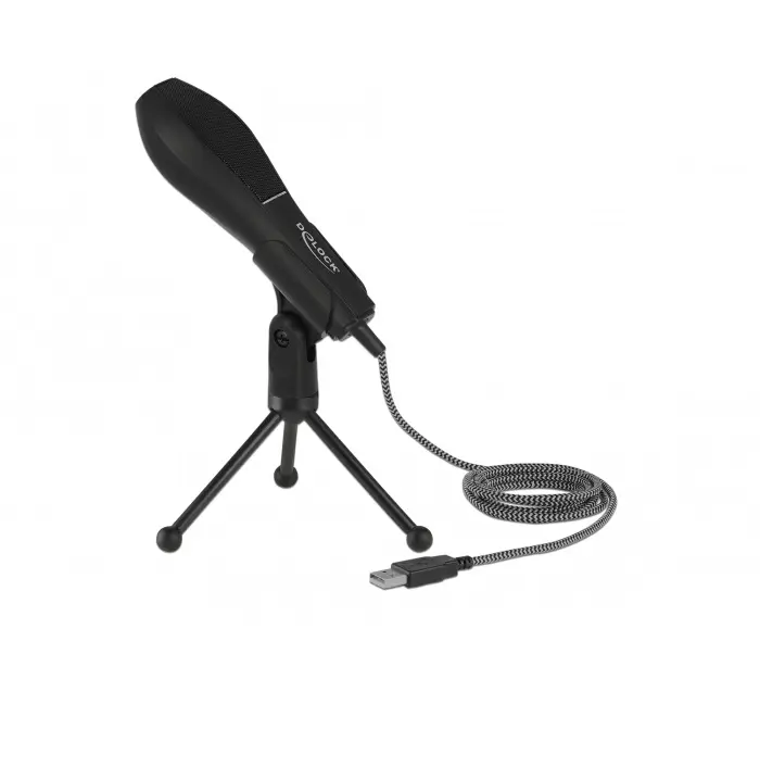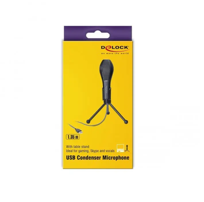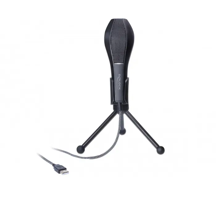 USB 2.0 16 Bit/44,1 kHz Questo microfono professionale USB Delock può essere utilizzato per trasmissioni vocali di qualità elevata. Il microfono presenta una configurazione circolare (omnidirezionale) e pertanto cattura il segnale acustico in modo ideale. Grazie all'elevata potenza, basso livello di auto-rumore e precisione delle prestazioni, anche i suoni più lievi vengono registrati in modo ottimale. Se necessario, il supporto da tavolo può essere ripiegato e trasportato facilmente.