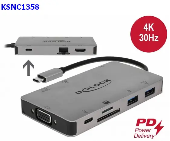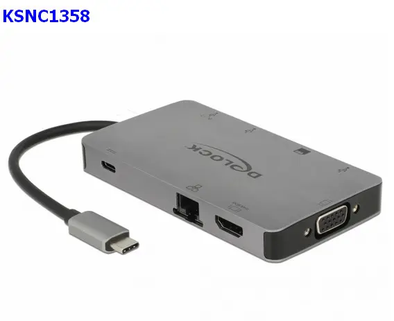 DELOCK USB-C >HDMI/VGA/USB3.1/PD/LAN/SD