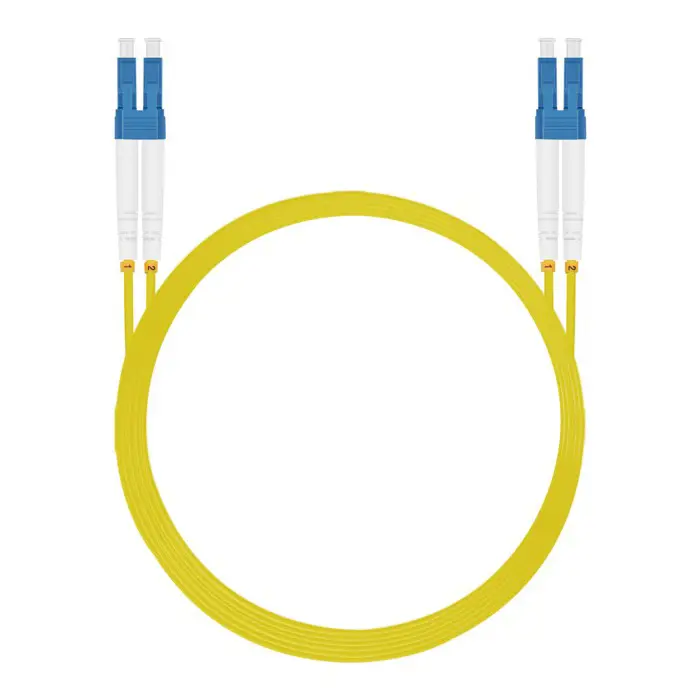 • Connettori: 1 x LC Duplex > 1 x LC Duplex • Cavo Singlemode OS2 • Fibra: 9/125 µm • Spinotto in ceramica con protezione antipolvere • LS0H (senza alogeni) • Colore: giallo • Lunghezza con connettori: ca. 2 m