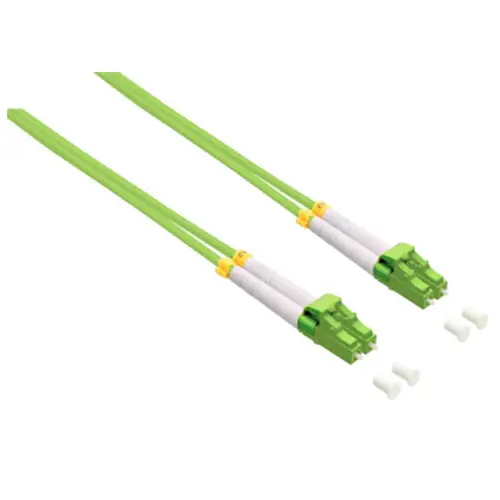 DUPLEX 10Gb LAN Questo cavo in fibra ottica può essere utilizzato per collegare vari dispositivi di rete, ad esempio uno switch a un convertitore multimediale. • Connettori: 1 x LC Duplex > 1 x LC Duplex • Cavo Multimode OM5 - 10 Gigabit/s • Fibra: 50/125 µm • Spinotto in ceramica con protezione antipolvere • LS0H (senza alogeni) • Colore: verdechiaro • Lunghezza cavo: ca. 50cm