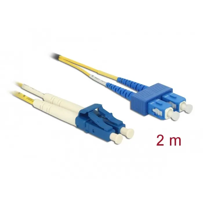 • Connettori: 1 x LC Duplex > 1 x SC Duplex • Cavo Singlemode OS2 • Fibra: 9/125 µm • Spinotto in ceramica con protezione antipolvere • LS0H (senza alogeni) • Colore: giallo • Lunghezza con connettori: ca. 2 m