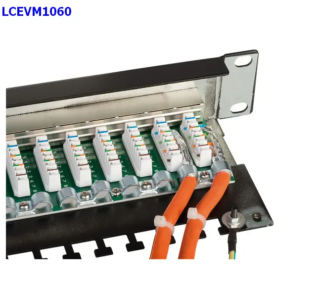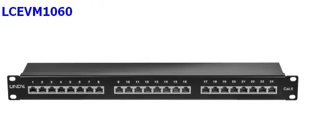 LINDY Connessioni LSA per AWG 22-24B Robusta costruzione, il coperchio in metallo e i connettori di qualità garantiscono installazioni affidabili e un'ottima schermatura dalle interferenze elettromagnetiche. 19", 1 U 24 porte RJ45 STP Cat.6 Gigabit Connessioni LSA per AWG 22-24B Codifica colori: T568 A e B 24 porte RJ45 10/100/1000 Gigabit STP Cat6 in 3 gruppi di 8 porte Per la successiva installazione del cavo da sopra può essere preferibile al pannello patch per la parte anteriore del rack 19 " Schermatura totale Cavo di terra da 40cm, fascette e viti per montaggio a rack inclusi