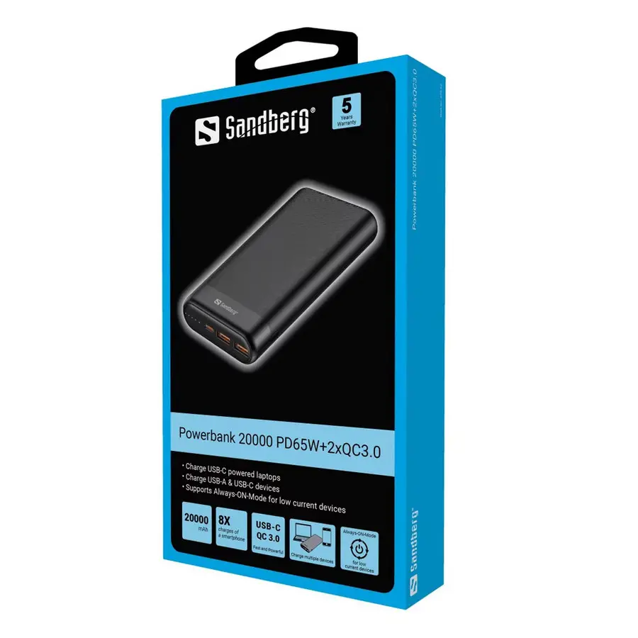 Powerbank 20000 PD65W+2xQC3.0