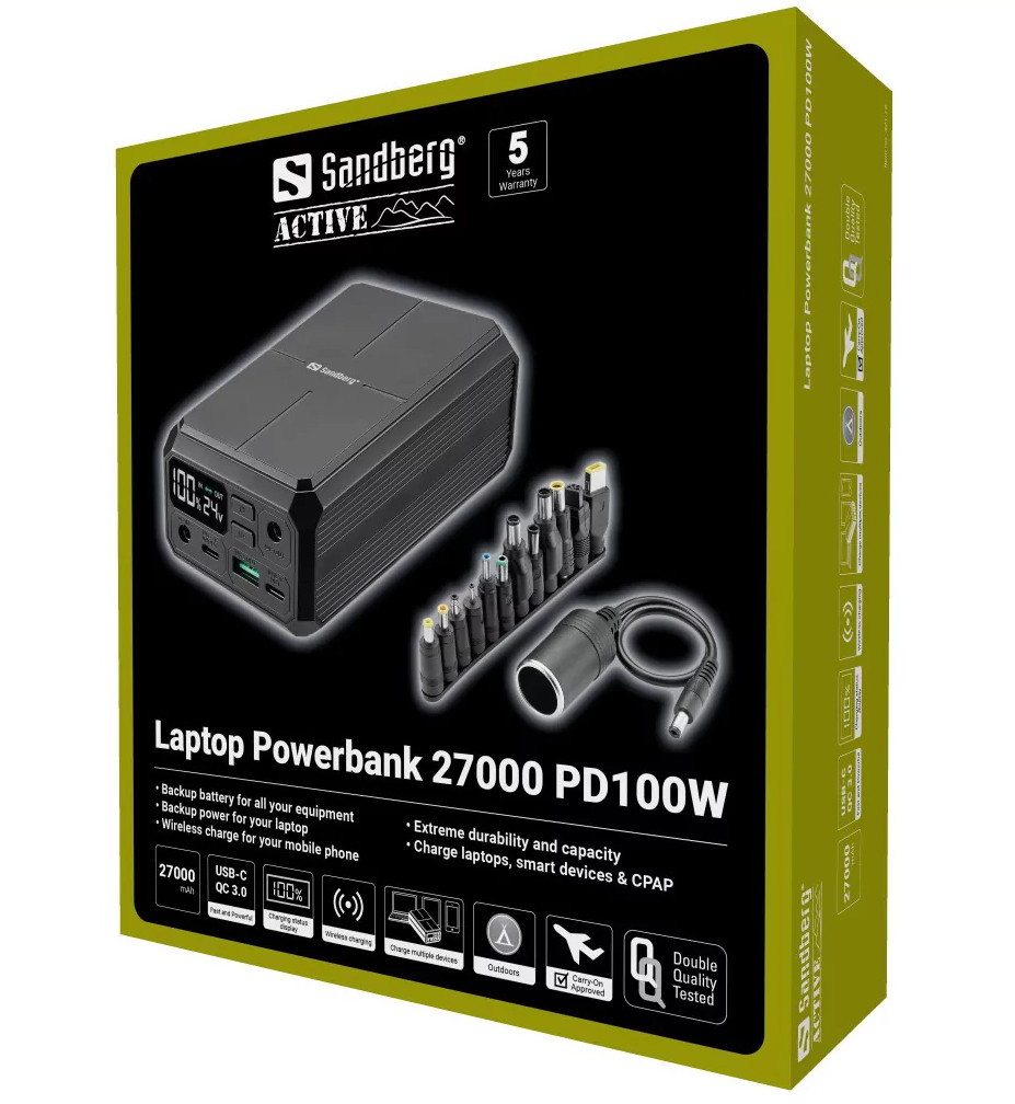 Sandberg Laptop Powerbank 27000 PD100W è il powerbank definitivo, caratterizzato da velocità impressionante, prestazioni potenti e un'ampia capacità di 27000 mAh! Con questo powerbank avrai sempre la garanzia di ricaricare in modo rapido ed efficiente tutti i tuoi dispositivi mobili, ovunque ti trovi. Supporta sia DC fino a 84 W, sia USB-A standard e USB-C PD 27+100 W, il che significa che puoi caricare quasi tutti i tipi di dispositivi mobili, compresi i laptop, in tempi record. Un display intelligente e informativo ti offre il pieno controllo sul processo di ricarica. Backup battery for all your equipment Backup power for your laptop Wireless charge for your mobile phone Extreme durability and capacity Charge laptops, smart devices & CPAP