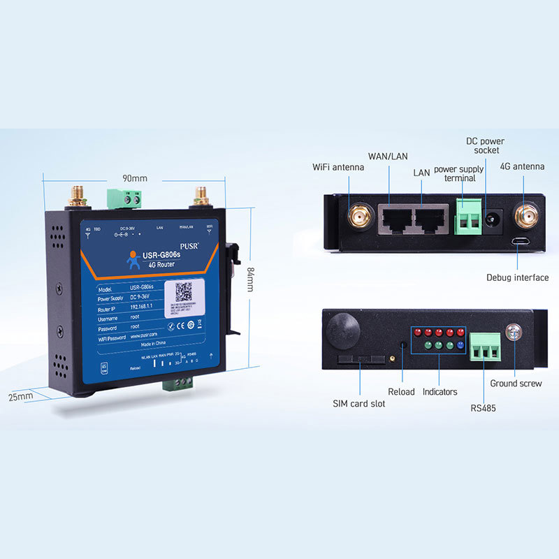 The USR-G806s is an IoT cellular router that integrates 4G LTE, Wi-Fi, and VPN technologies to provide an easy, reliable,