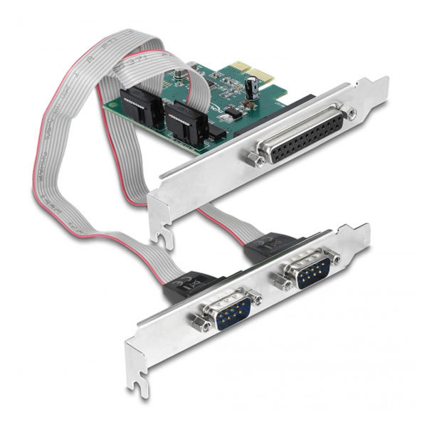 La scheda PCI Express Delock espande il PC di due porte seriali esterne, nonché una porta parallela esterna. È possibile collegare vari dispositivi, tra cui scanner, stampante, mouse, ecc., a questa scheda.