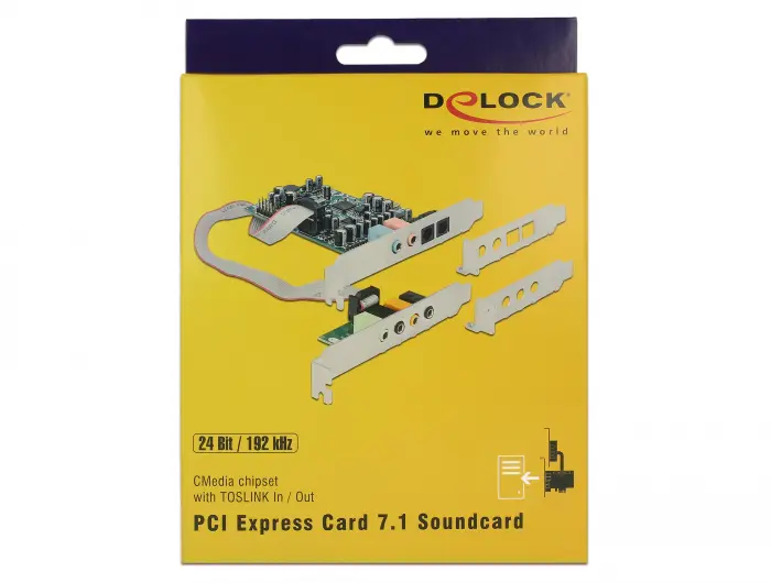 Questa scheda audio PCI Express Delock estende il sistema con vari ingressi e uscite audio e dispone di 8 canali audio. Questo consente di collegare dispositivi quali altoparlanti, cuffie ecc. Se utilizzata in combinazione con un auricolare, la scheda audio risulta ideale per applicazioni come Skype o di gioco. Utilizzando le staffe a basso profilo incluse, la scheda PCI Express può essere installata anche in un Mini-PC.