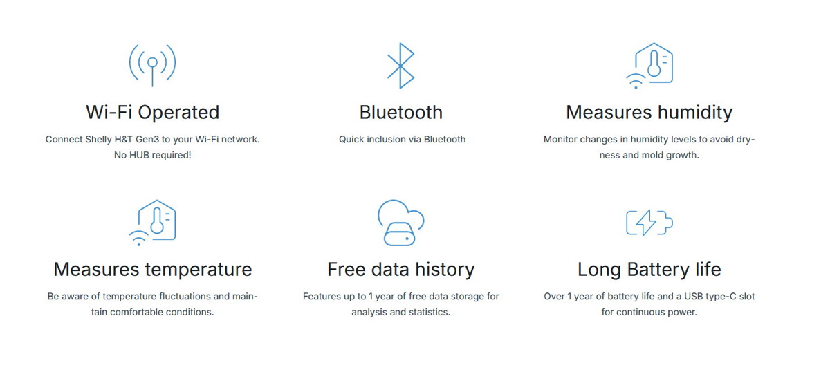 Shelly H&T Gen3 is enhanced with a type-C USB slot, allowing for continuous power, faster connection and more frequent reports.