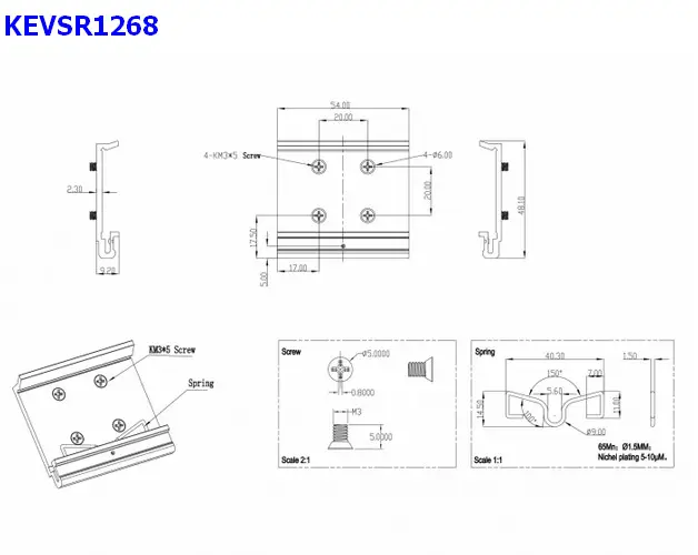 • Temperatura ambientale: -40 °C ~ 85 °C • Montaggio su guida DIN: 35 mm • 4 x fori di montaggio • Diametro foro di montaggio: 6 mm • Passo del foro per vite: circa 20 mm • Materiale: alluminio con filo d'acciaio per molle • Dimensioni (LxPxA): ca. 48,1 x 54,0 x 9,2 mm