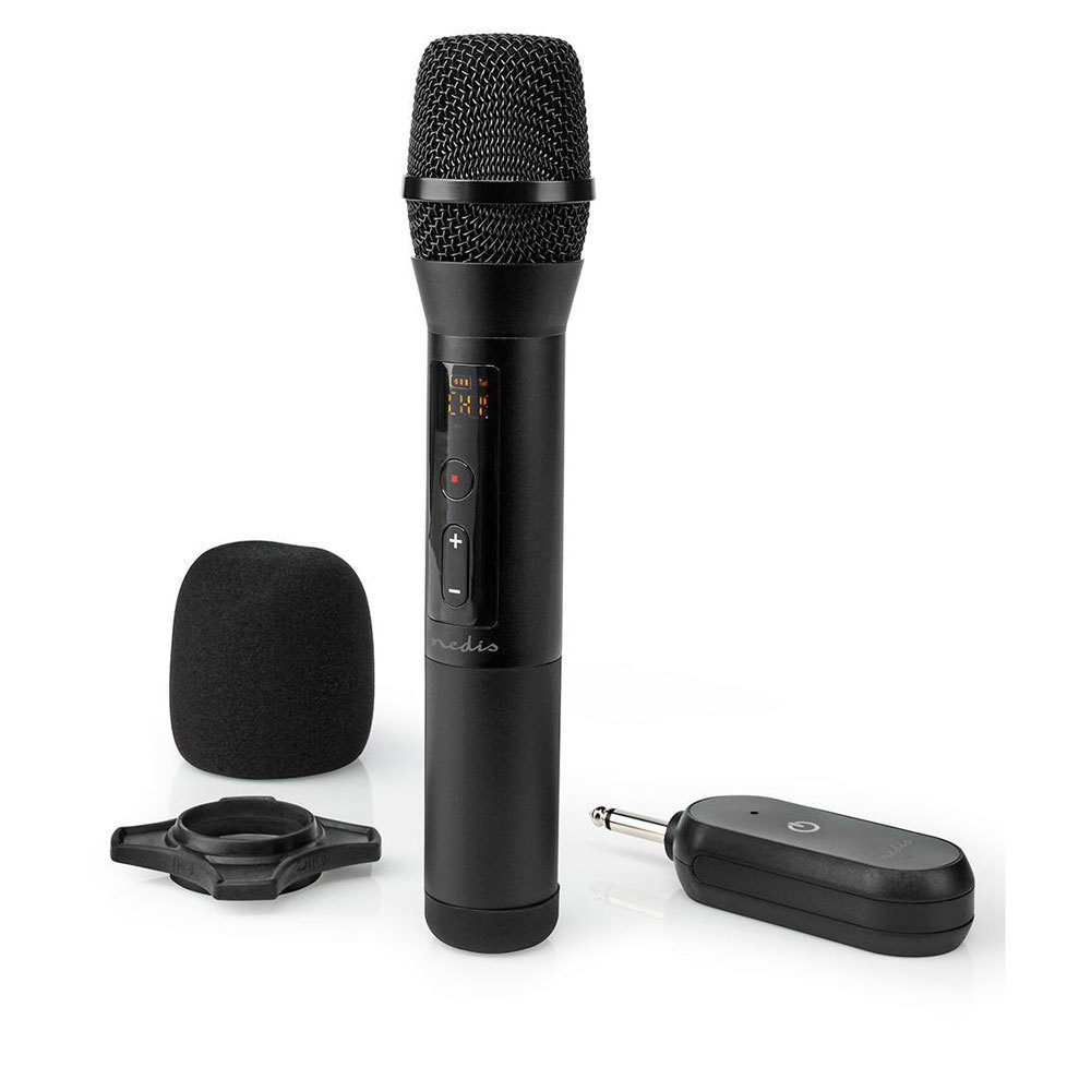 • Microfono wireless portatile e ricevitore plug-in • Display digitale con frequenza microfono selezionabile (multicanale) • Banda UHF: 863 - 865 MHz • Distanza effettiva: fino a 50 m • Prestazioni affidabili senza distorsioni • Circuito di silenziamento automatico e cancellazione degli shock • Filtro anti-pop acustico integrato • Ricevitore con batteria ricaricabile (inclusa) • Il microfono portatile funziona a batteria (2x 1,5V/AA, incluse) • Connessioni in uscita: Jack da 6,3mm • Intervallo di frequenze: 863 - 865MHz • Risposta in frequenza: 40 Hz - 18.000 Hz • Stabilità di frequenza: +/- 10 ppm • Uscita RF: 10dBm • Sensibilità: -95dB - -71dB • Rapporto segnale-rumore: >90dB • THD: <0,5% • Livello di uscita: Master 300 mV • Batterie: 3,7 V (cella agli ioni di litio 18650) • Alimentazione elettrica: 5V tramite USB • Dimensioni: ricevitore: 115 x 35 x 25 mm • Dimensioni: microfono ø52 x 245 mm • Il peso: 0.4 Kg.