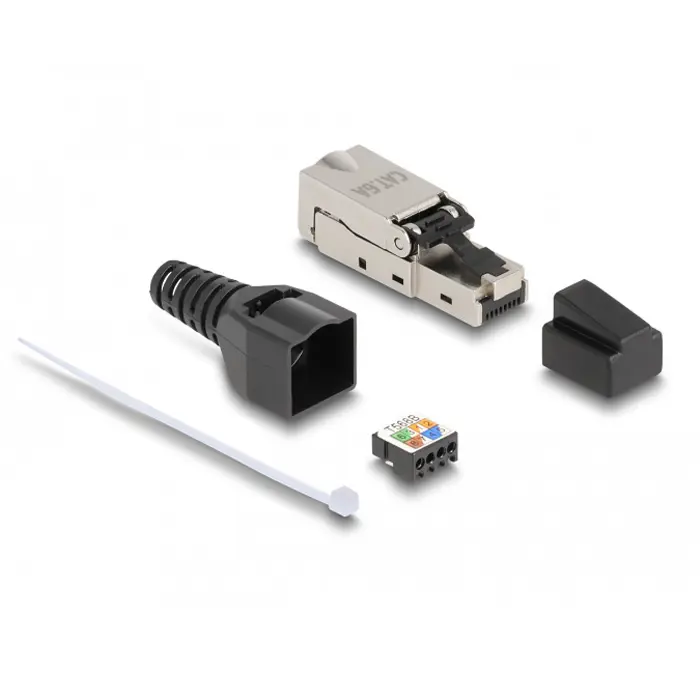 Questo plug RJ45 Delock può essere utilizzato per collegare i cavi di rete. L'installazione del plug su vari tipi di cavo non richiede attrezzi e consente di risparmiare tempo.