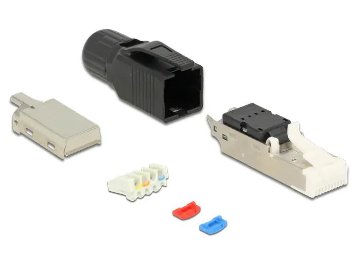 Questa presa RJ45 Delock può essere utilizzata per collegare i cavi di rete PROFINET. L'installazione del plug su vari tipi di cavo non richiede attrezzi e consente di risparmiare tempo. Nota: Il connettore è progettato solo per 2 coppie di fili e 100 Mbps.