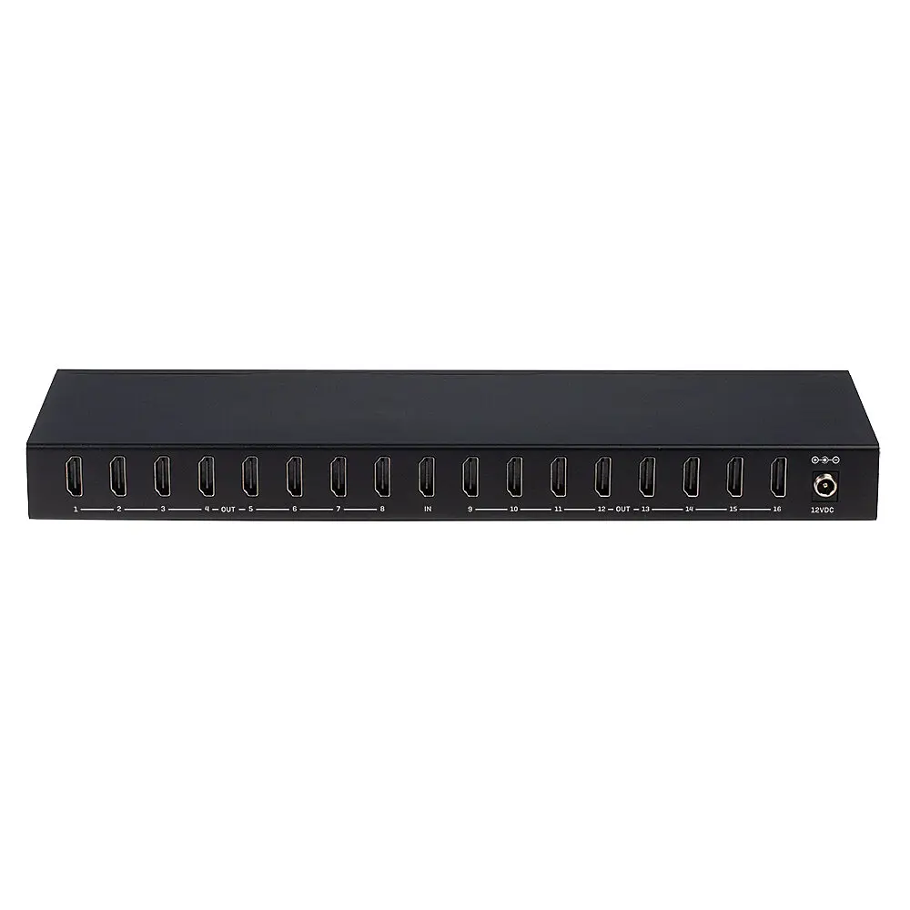 Splitter HDMI di alta qualità per la distribuzione di un segnale su diversi display simultaneamente. Questa versione da 16 porte è una soluzione professionale trasferire un segnale HDMI di alta qualità da una sorgente come media player, PC, ricevitore satellitare, ecc, su 16 schermi, TV o proiettori.