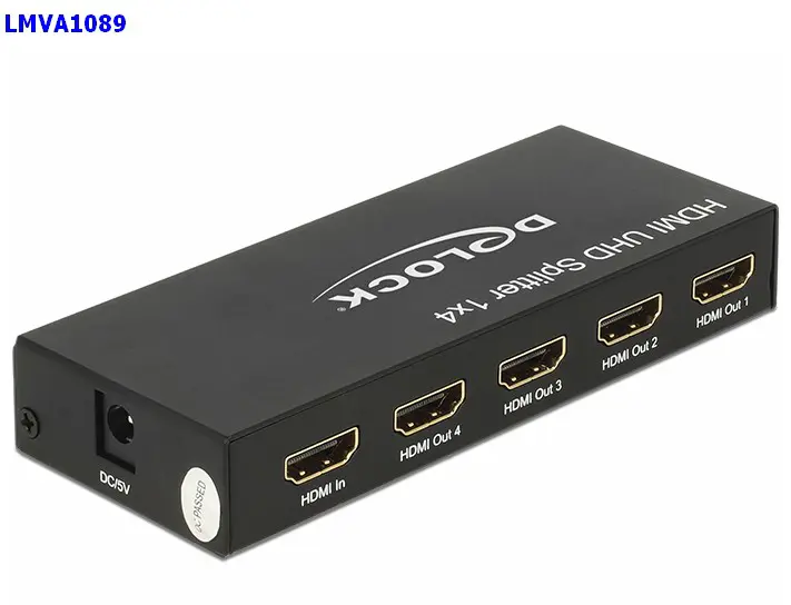 DELOCK - 3840 x 2160 @ 60 Hz This splitter by Delock receives a HDMI signal from a PC or laptop and splits it to four connected displays. Thereby one HDMI connection can be used to operate four HDMI monitors.