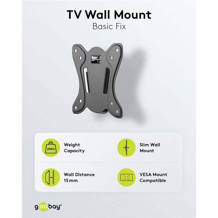 fissa la TV in una posizione stabile a soli 15 mm dalla parete perfetto per piccoli televisori in nicchie o sopra i pensili come in cucina o in camera da letto adatto a televisori di dimensioni comuni (ad esempio 24", 27", 32", 40") e marche (Samsung, Sony, Philips, LG ecc.) con QLED e LED montaggio facile, compatibile con gli standard VESA 75x75 e 100x100