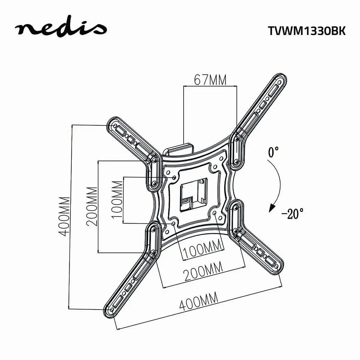 VESA100/200/300/400 25°/35° xTV 23-55" Collega il TV a questo supporto da parete Nedis® per inclinarlo, ruotarlo e girarlo. Ciò ti garantisce enorme flessibilità per regolare il TV come meglio desideri e godere dell'angolo di visualizzazione perfetto in tutte le condizioni. Troverai compresi tutti i materiali di installazione necessari e un manuale per installare il supporto TV da parete in modo facile e veloce. Funzioni