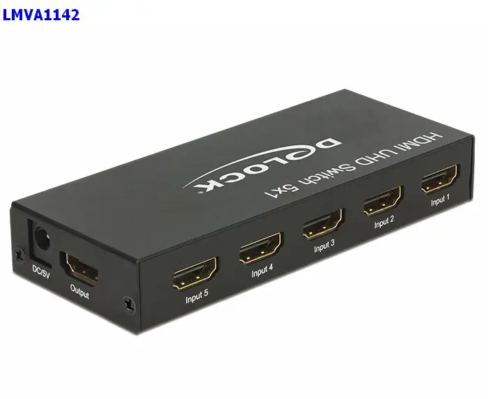 DELOCK 3840 x 2160 @ 60 Hz With this Delock HDMI switch up to five HDMI devices can be used with one HDMI monitor, TV or beamer. With the button on the device or the remote control you can switch between the HDMI devices.