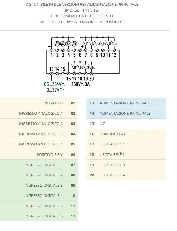 6 INGRESSI DIGITALI -- 4 INGRESSI ANALOGICI -- 4 USCITE RELAY